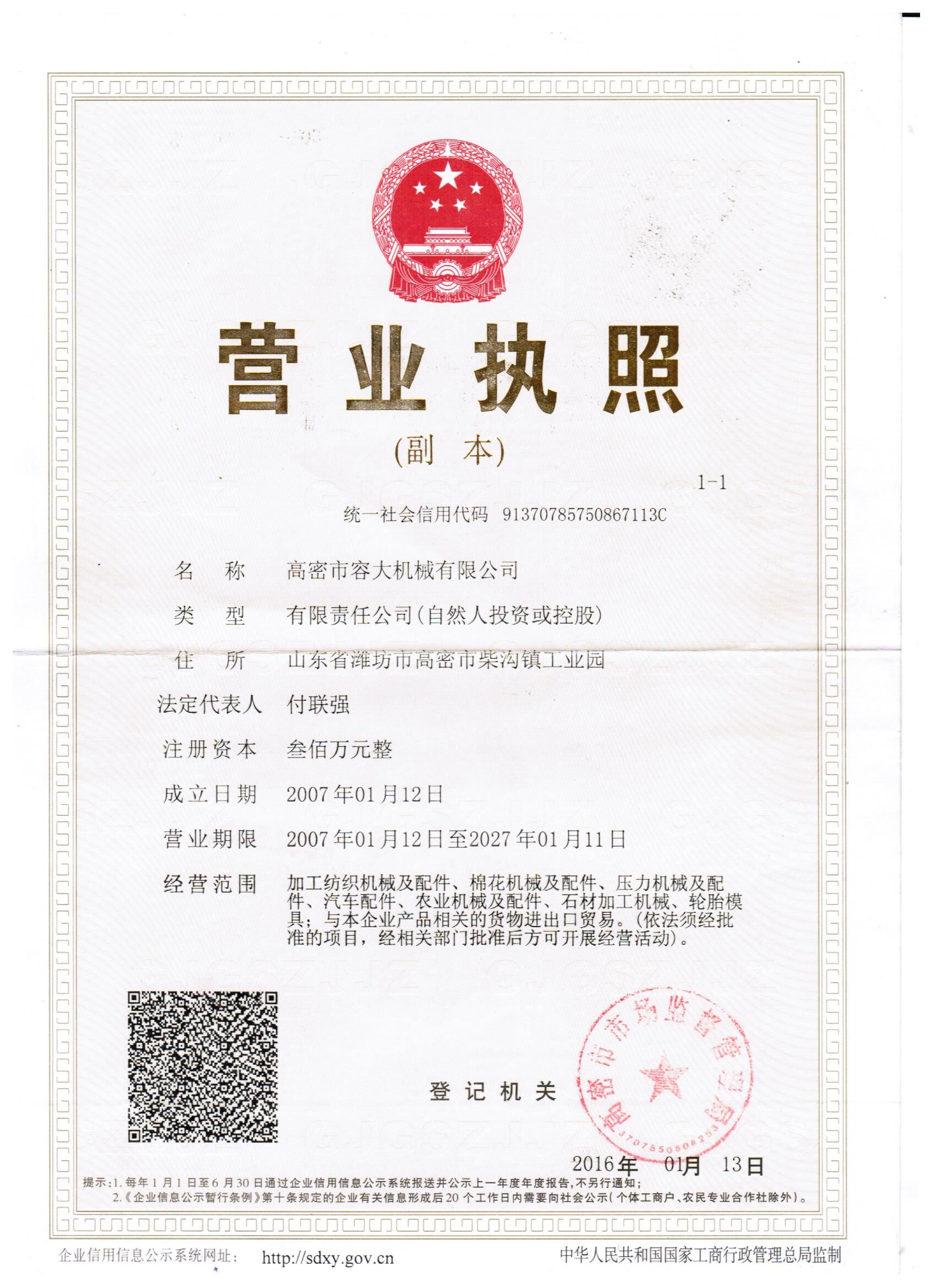 高密市容大機械有限公司 |